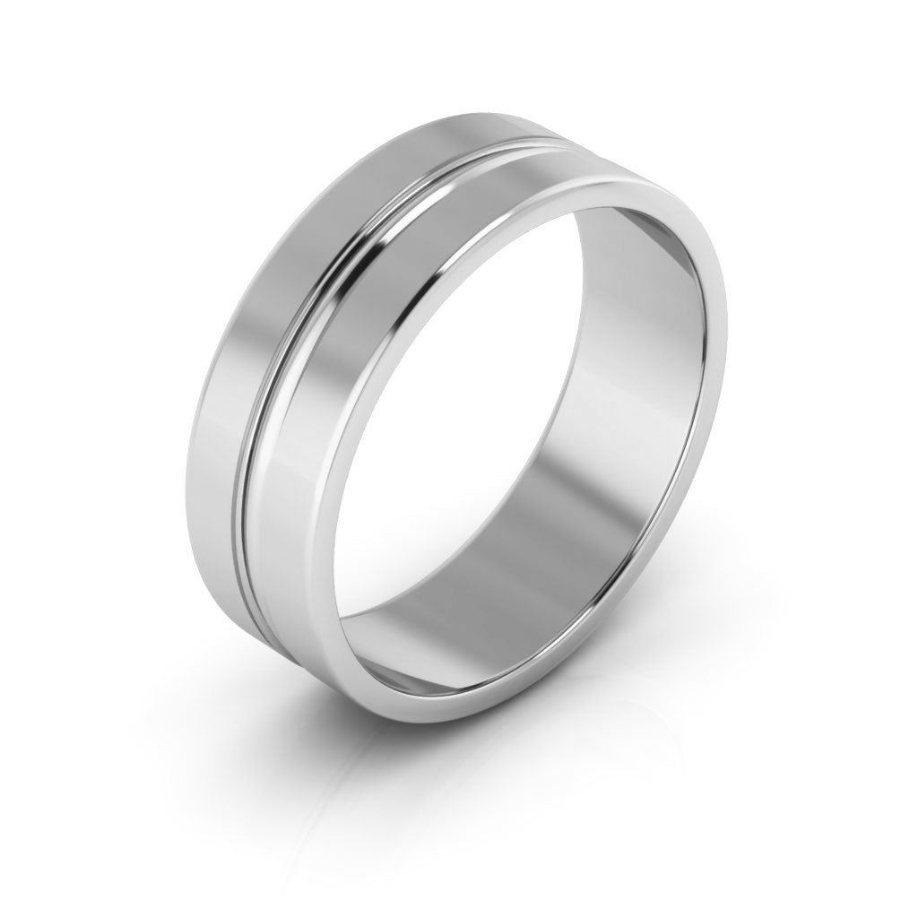 10K White Gold 6mm traditional plain grooved design high polished men's & women's wedding band. This classic ring is for everyday wear.