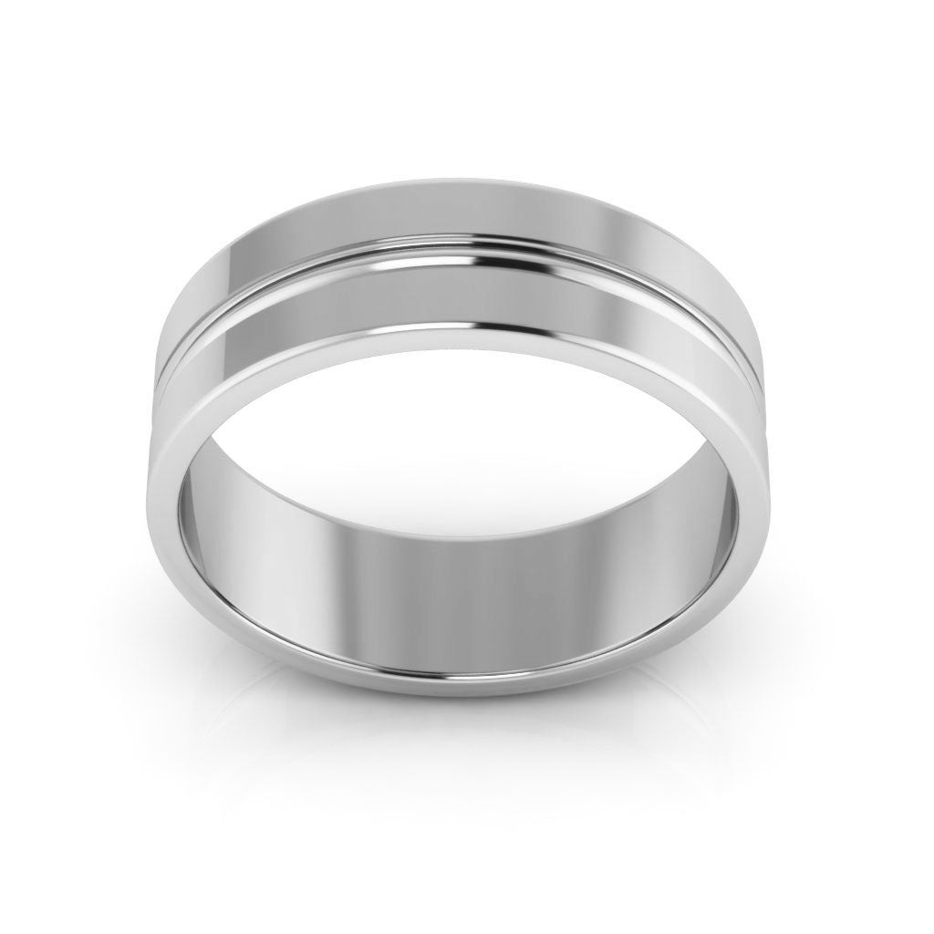 10K White Gold 6mm grooved design wedding band