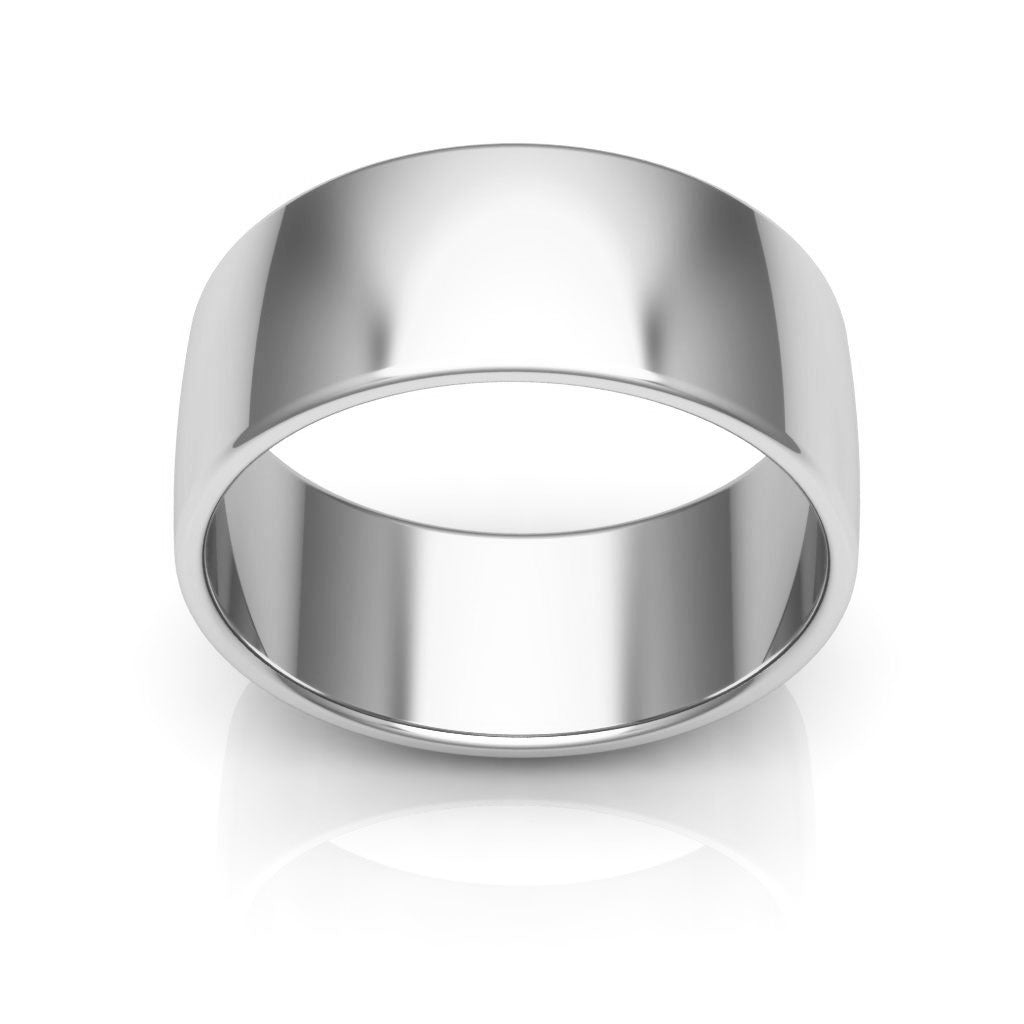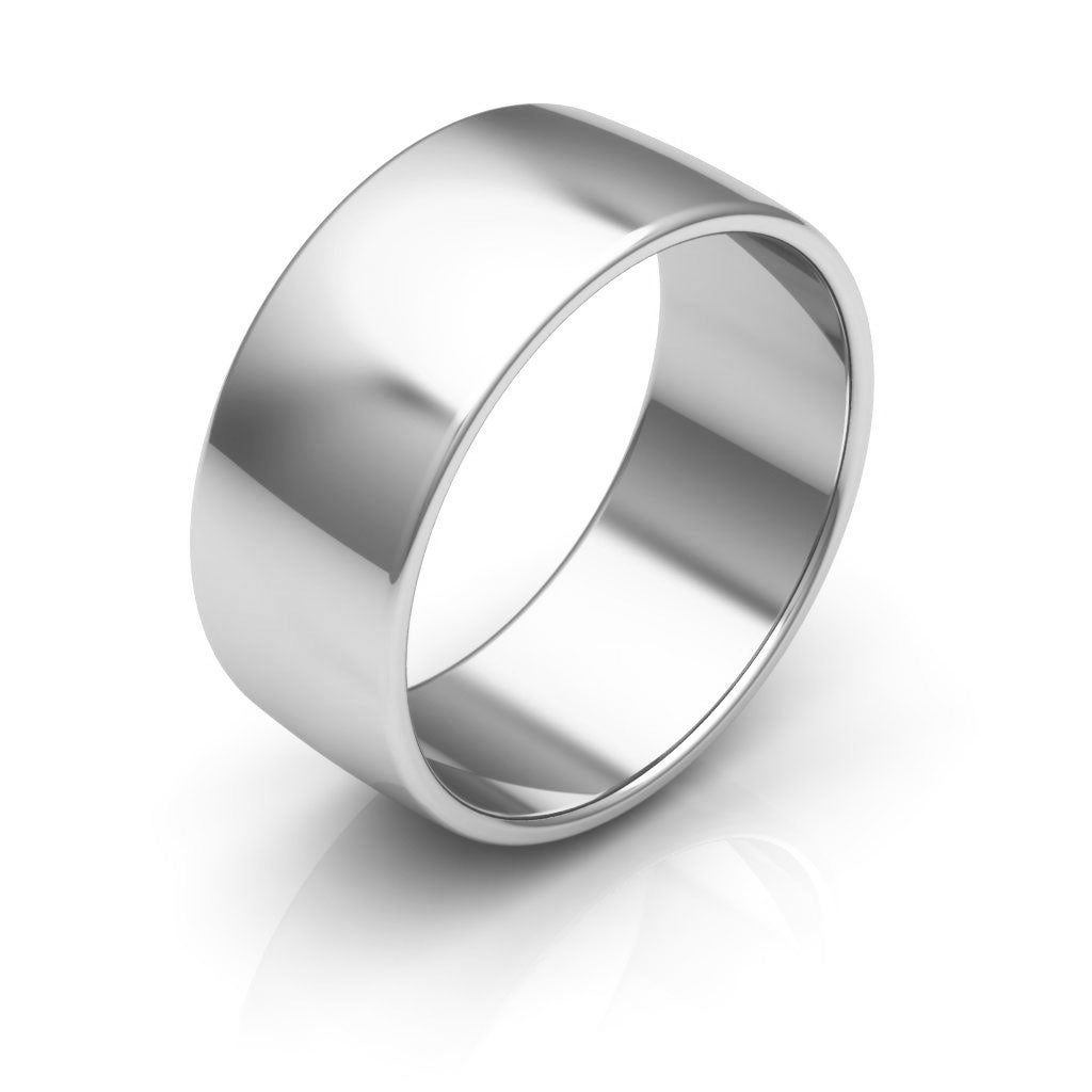 18K White Gold 8mm traditional plain low dome men's & women's wedding band. This classic ring is for everyday wear.