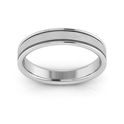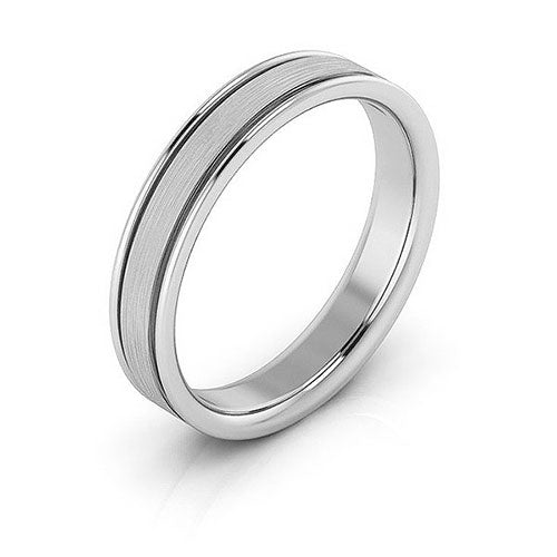 18K White Gold 4mm traditional plain raised edge design brushed center comfort fit men's & women's wedding band. This classic ring is for everyday wear.