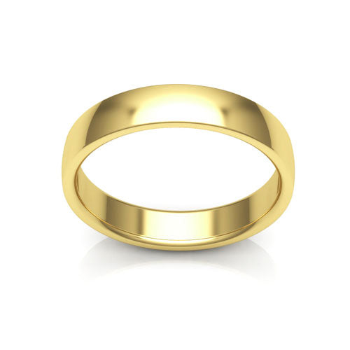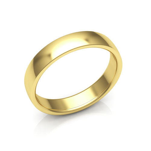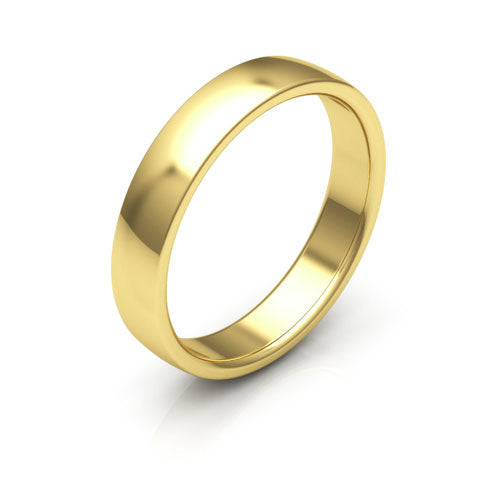 18K Yellow Gold 4mm traditional plain low dome comfort fit men's & women's wedding band. This classic ring is for everyday wear.