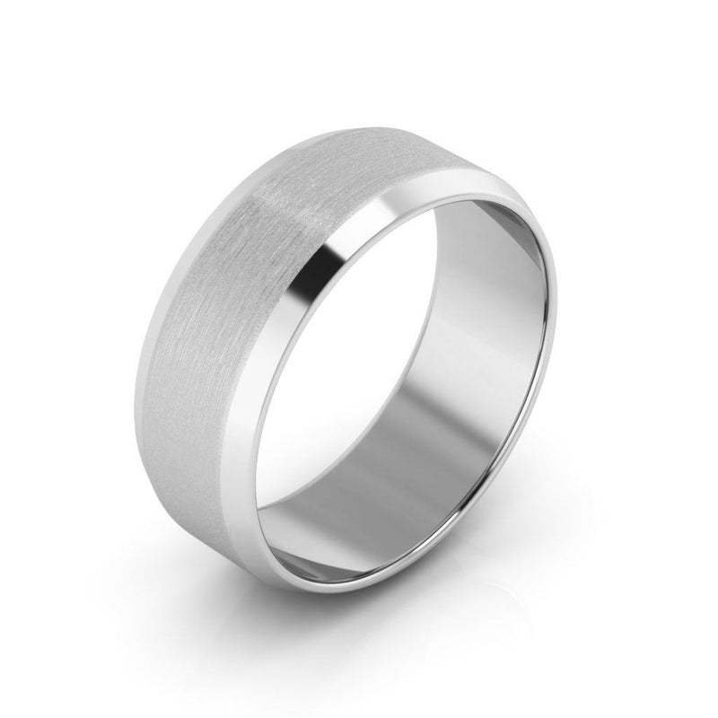 10K White Gold 7mm beveled edge satin center wedding band