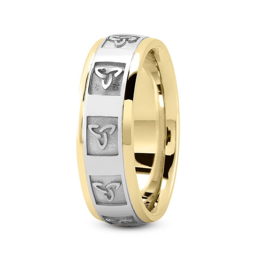 14K Two Tone Gold (White Center) 7mm fancy design comfort fit wedding band with celtic and retangular frame design