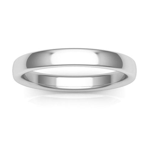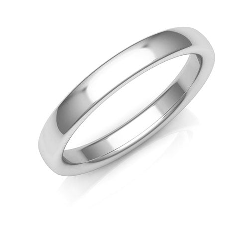 18K White Gold 3mm traditional plain heavy weight low dome comfort fit men's & women's wedding band. This classic ring is for everyday wear.