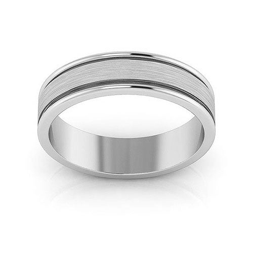 18K White Gold 5mm traditional plain raised edge design brushed center men's & women's wedding band. This classic ring is for everyday wear.
