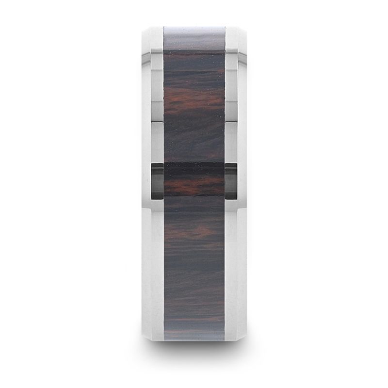 AZTEC Mahogany Inlaid Tungsten Carbide Ring with Polished Beveled Edges - 8mm